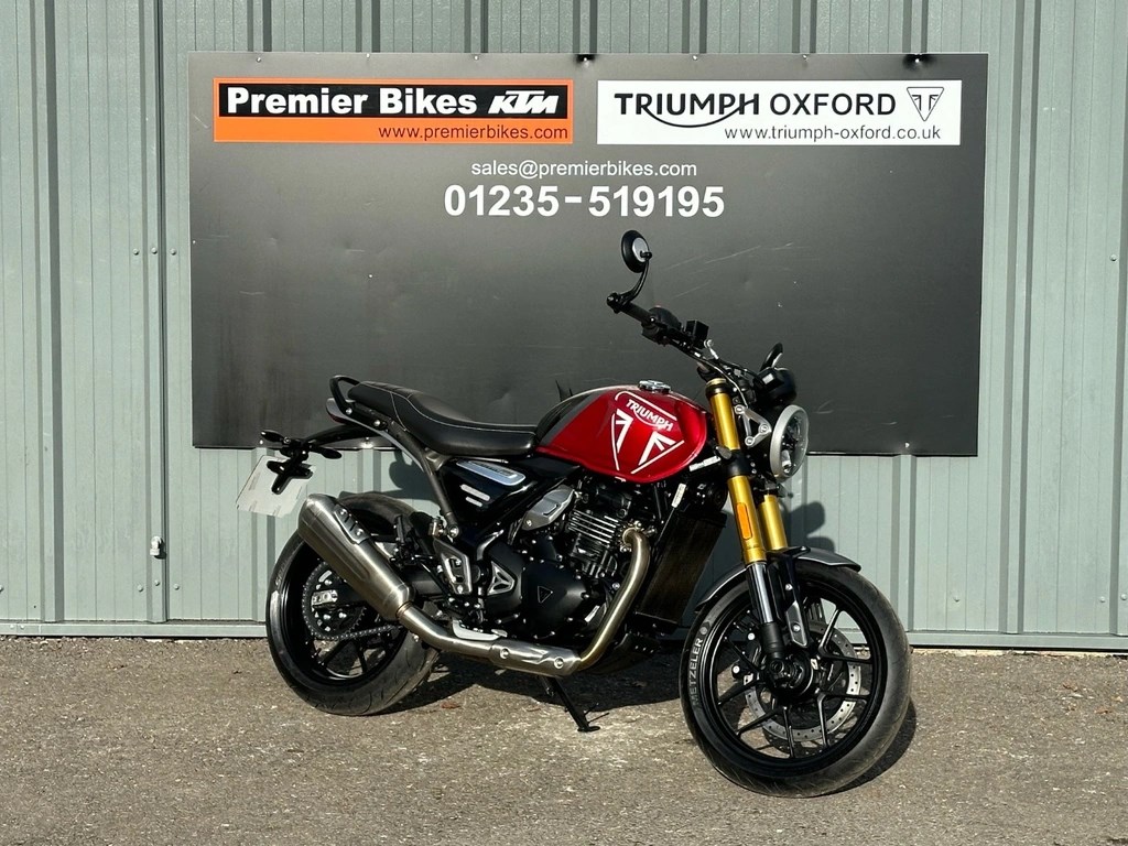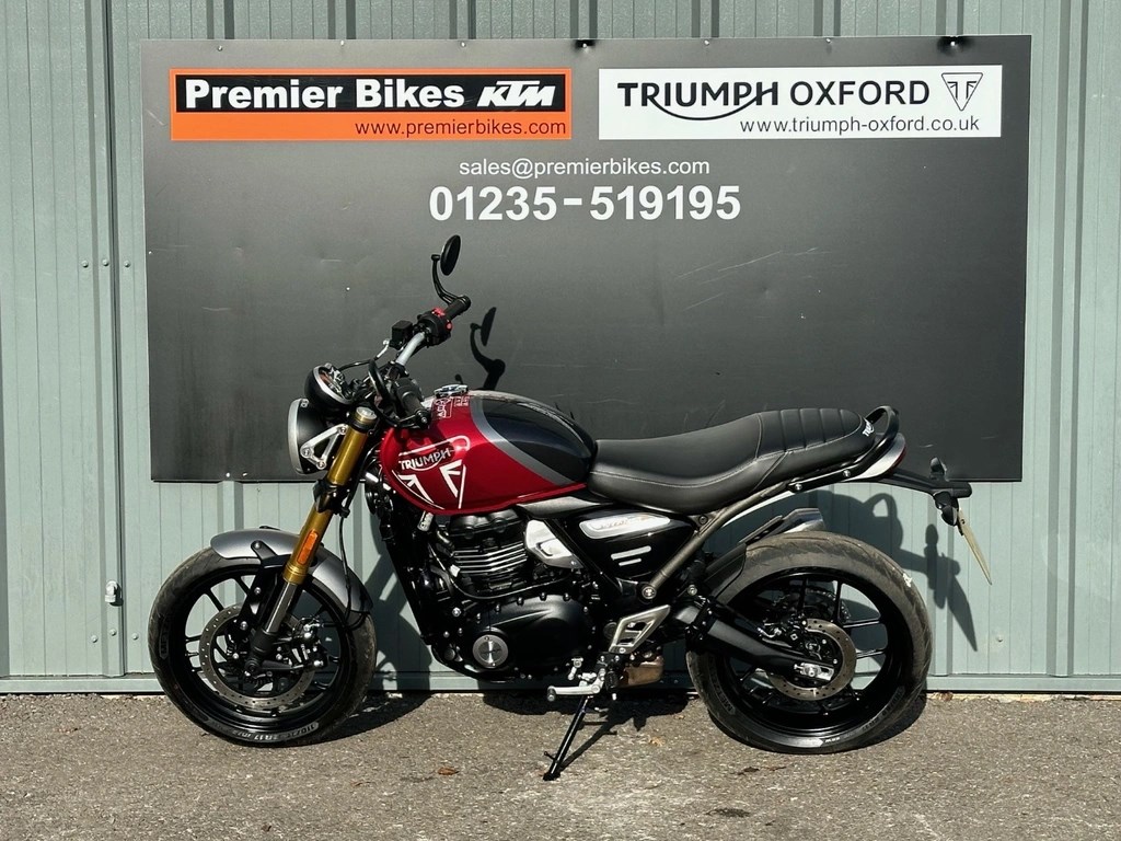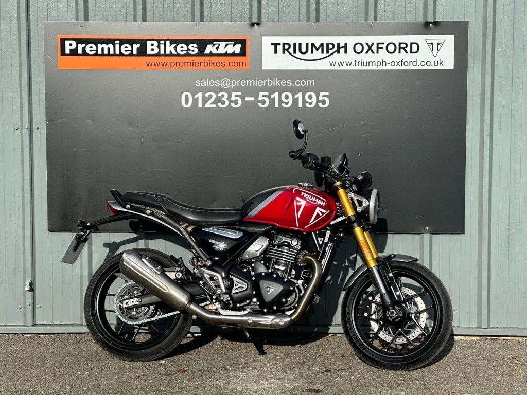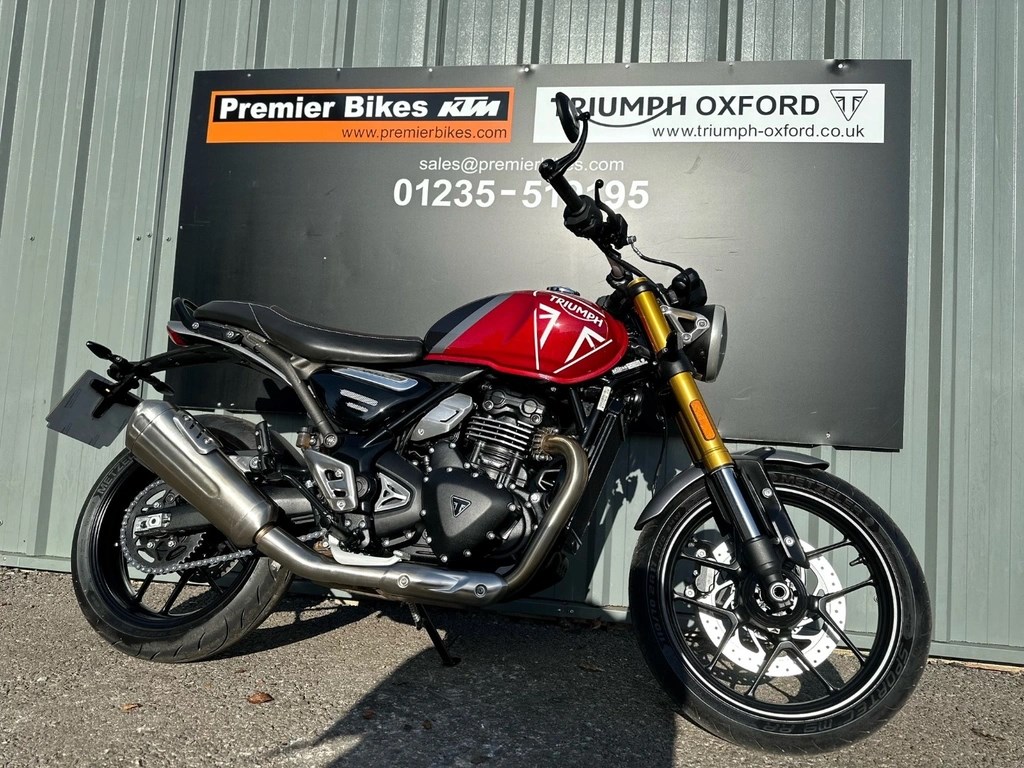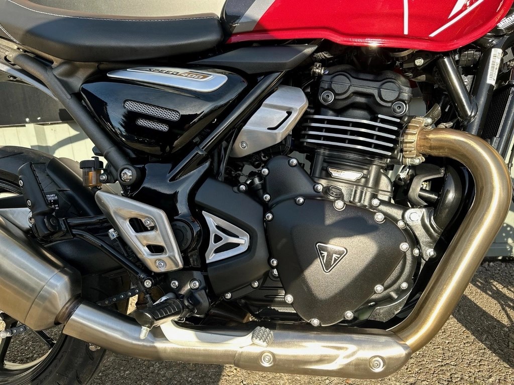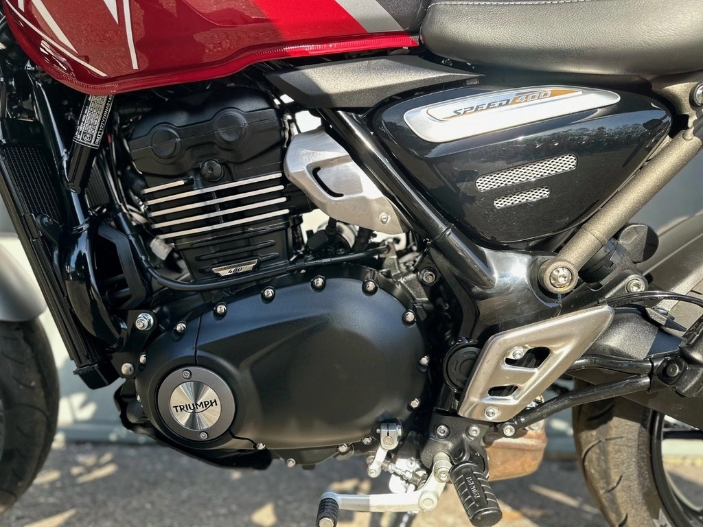 We now have this One Private Owner Triumph Speed 400 in Carnival Red, This machine was used just the once. A change of personnel circumstance makes the bike now available. Please ask for any additional pictures or we can also offer a personal video presentation of the bike for you. PX very welcome, UK delivery arranged, Competitive and flexible finance available subject to status, Call our experienced Triumph sales team now on 01235 519195 or email sales@triumph-oxford.co.uk - Check out all of our other bikes at www.triumph-oxford.com