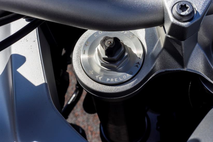 If you want to take it easy, a quick change of mode makes the back end much more compliant, while another press of a button firms it up for a more dynamic ride. Triumph have an electronically-adjustable shock on the GT Pro model (not semi-active), it seems a shame they haven’t fitted it to the Rally Pro as it would certainly benefit.