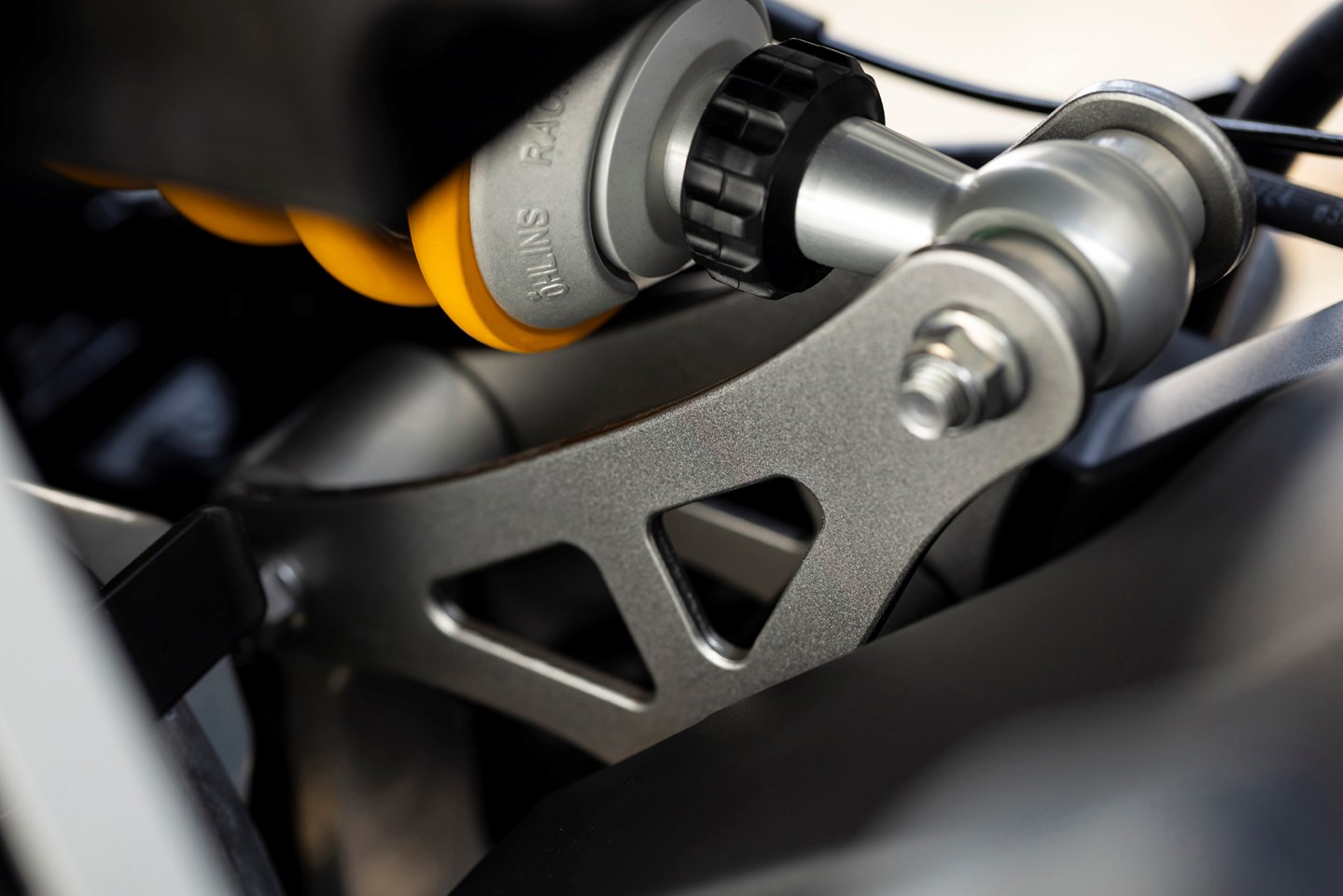 Rear suspension Öhlins shock. Adjustable preload and rebound damping