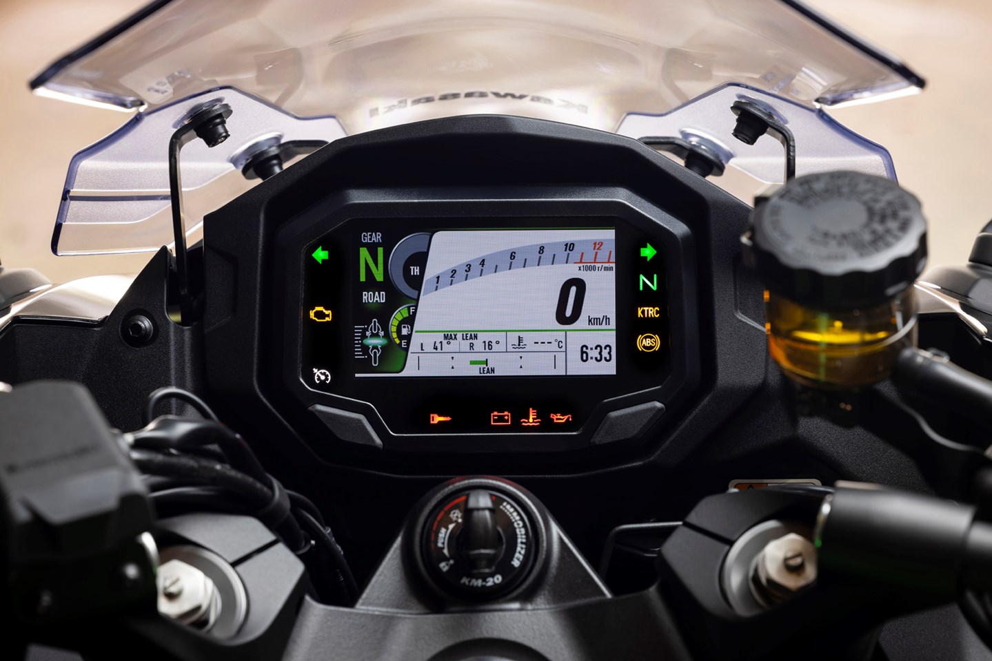 2025-on Kawasaki Ninja 1100SX SE detailed shot of the dash
